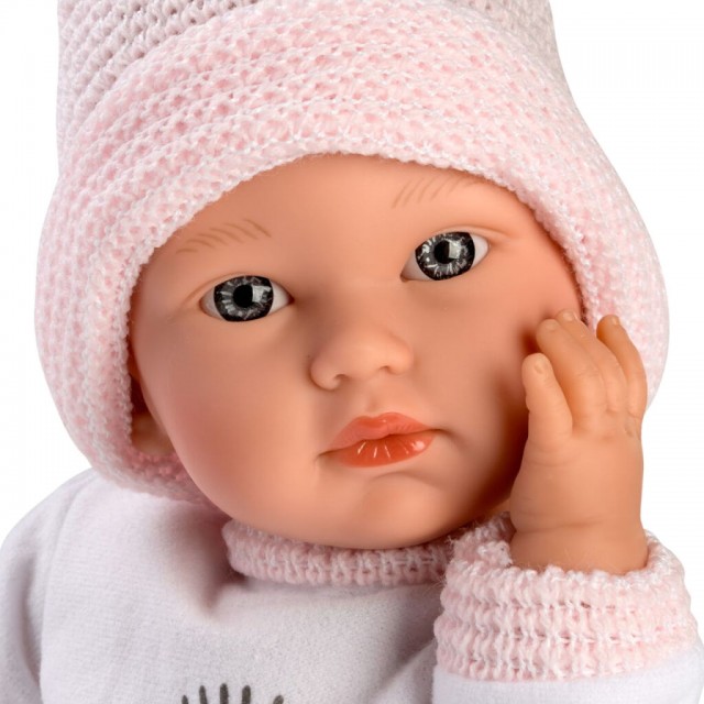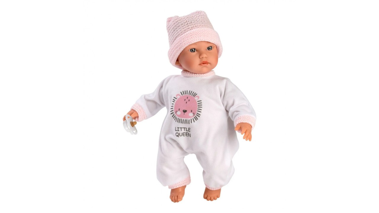 Hovoriace bábätko s mäkkým látkovým telom, ktoré po zatlačení na hrudník začne hovoriť „mama“, „papa“ a vydávať reálny zvuk plačúceho bábätka. Súčasťou balenia je 3x gombíková batéria LR44. Bábiky Llorens s realistickými tváričkami ponúkajú vysoko kvalitné, detailné spracovanie.