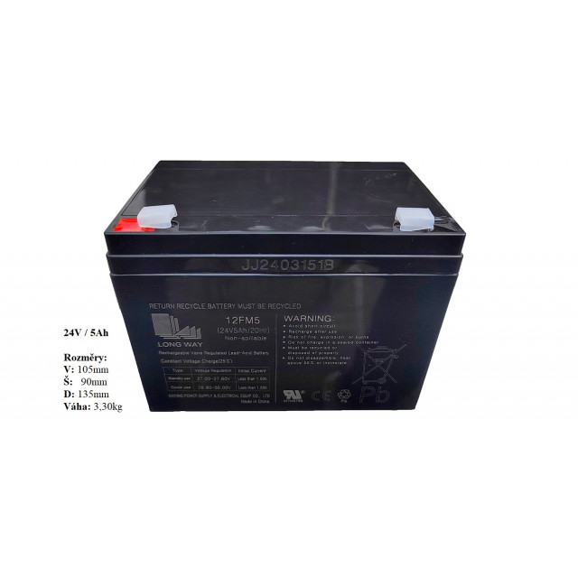 kvalitní olověná kyselinová nabíjecí baterie Long Way 24V-5Ah,