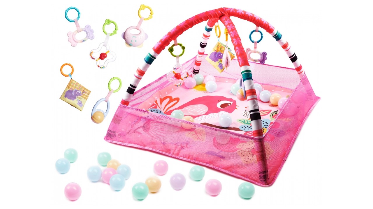 Hracia deka s postrannou sieťou je vyrobená z príjemnej ľahkej a mäkkej tkaniny. Na deku sa dajú upevniť dve hrazdičky na ktoré sa zavesia hrkálky a šuštiaca textilná knižka, ktoré podporujú rozvoj zmyslov hmat, sluch a motoriku dieťaťa. Ďalej obsahuje farebné pastové loptičky. Vyrobené s dôrazom na každý detail a na potreby malých detí, ktoré poznajú svet. Deka sa dá použiť aj. bez tyčí - po ich zložení spadne aj sieťka tvoriaca ohrádku. Samotná deka potom skvele izoluje proti chladnej zemi, vymedzí hraciu zónu a úspešne nahradí koberec v detskej izbe.