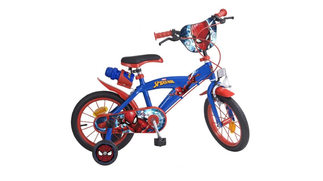 Detský bicykel Toimsa s nafukovacími kolesami aj s pomocnými kolieskami. S obľúbeným motívom Spiderman. Má bezpečnostné reflexné odrazky, nastaviteľná výška sedadla, nastaviteľná výška riadidiel, pomocné stabilizačné kolieska, brzdový systém. Bicykel má dva typy bŕzd – „V“ ráfikové a zadne bubnové, plný kryt reťaze, plastový blatník.mi aj s pomocnými kolieskami vo veľkosti. Prevedenie s obľúbeným motívom Spiderman.