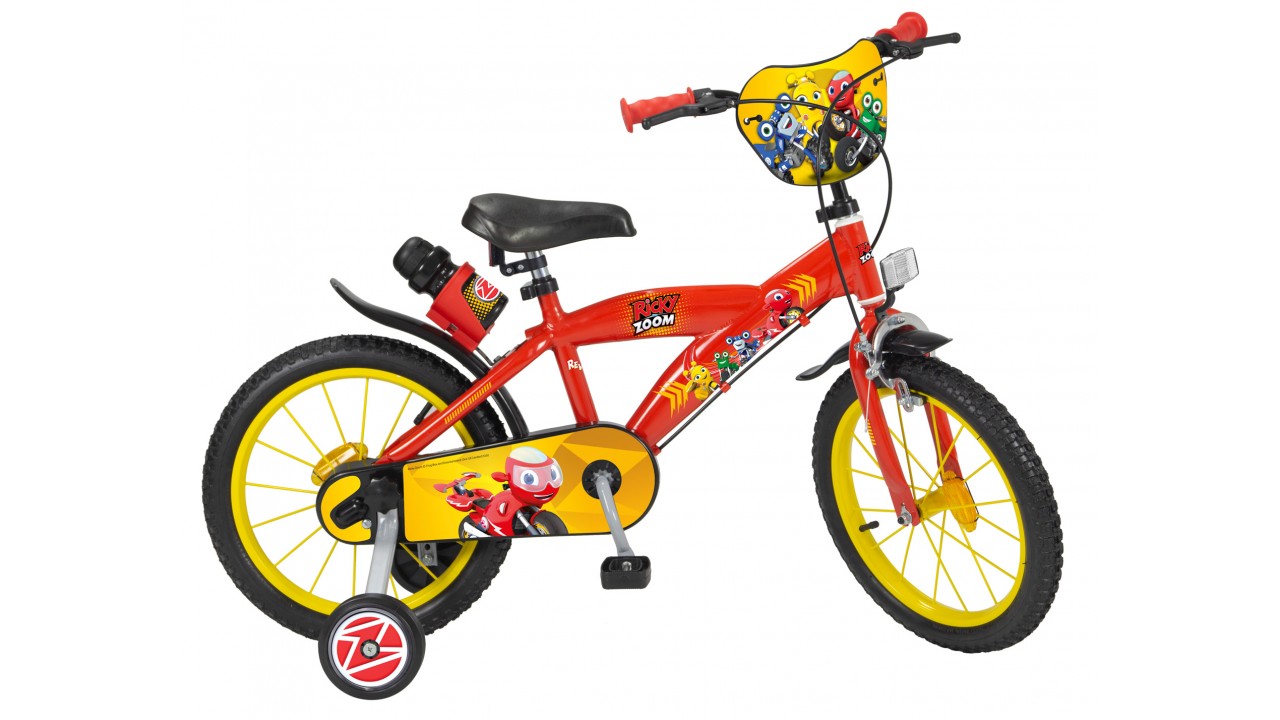 Detský bicykel Toimsa s nafukovacími kolesami aj s pomocnými kolieskami. S obľúbeným motívom Ricky Zoom. Má bezpečnostné reflexné odrazky, nastaviteľná výška sedadla, nastaviteľná výška riadidiel, pomocné stabilizačné kolieska, brzdový systém. Bicykel má dva typy bŕzd – „V“ ráfikové a zadne bubnové, plný kryt reťaze, plastový blatník.mi aj s pomocnými kolieskami. Prevedenie s obľúbeným motívom Ricky Zoom.