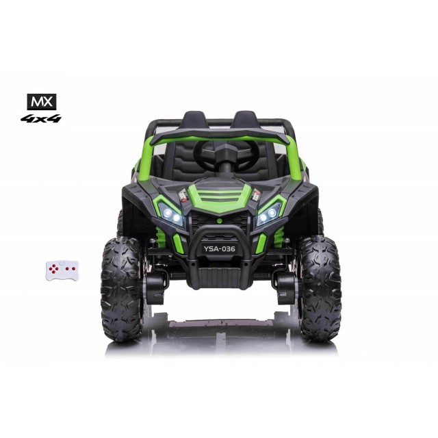 Elektrická bugina MX 4x4 12V s 2.4G bluetooth DO, Bluetooth, USB, LED osvětlení, voltmetr, otvírací dveře, kufřík na drobnosti, náhon všech EVA kol 4x4, zadní odpružení, čalouněná sedačka s pásem, kvalitní materiály a zpracovánie