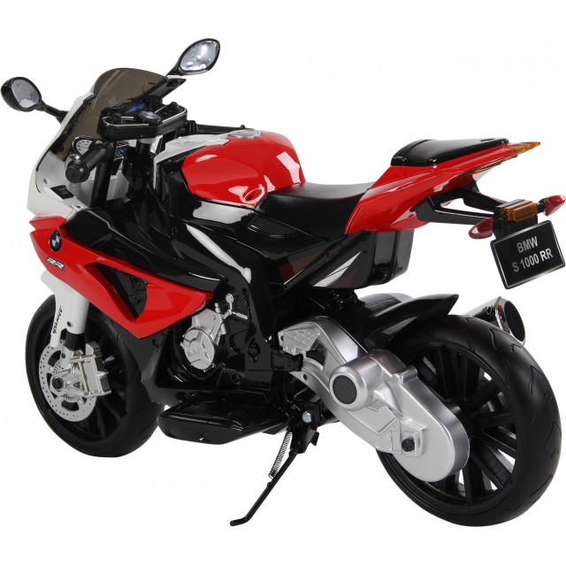 Elektrická motorka 12V BMW S1000 RR Policie, policajná motorka BMW, licencia BMW, s obojstranným náhonom, 2 motory 45W / 12V, možnosť výmeny stojanu za pomocné koliečka. Pri jazde svietia predné svetlá, má kľúč s logom BMW, zvukové efekty: klaksón, štart motora, zvuk jazdy, pesničky, melódie, EVA kolesá.