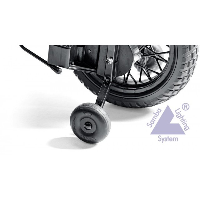 Pre dokonalý zážitok z jazdy sú na tejto elektrickej motorke aj zvukové efekty motora či klaksón. Motorka sa pohybuje pomocou 2 elektrických motorov a je možné nastaviť 2 rýchlostné stupne. K motorke sa dajú pripojiť pomocné kolieska, takže sa nemusia báť ani tí menej odvážni motorkári.
