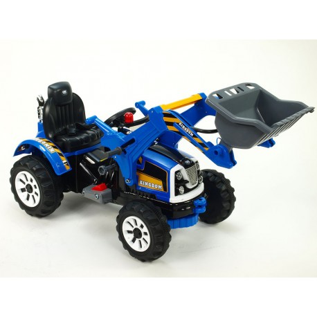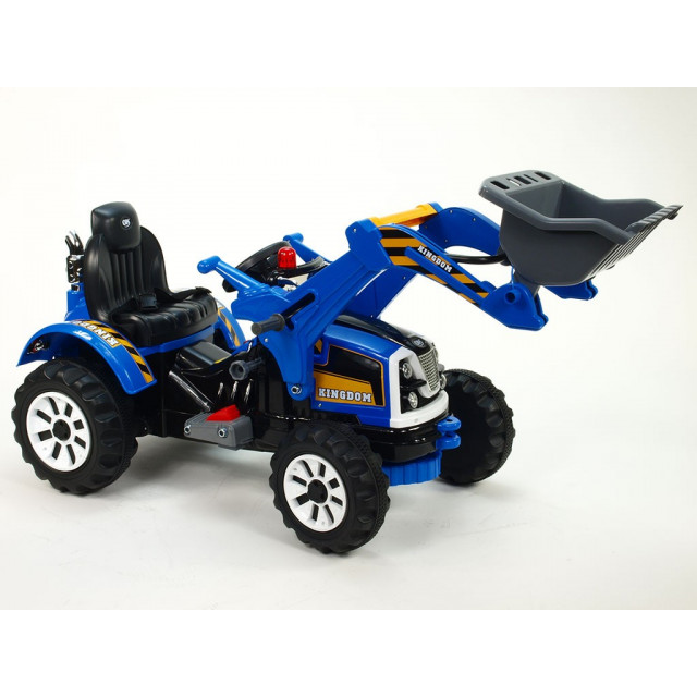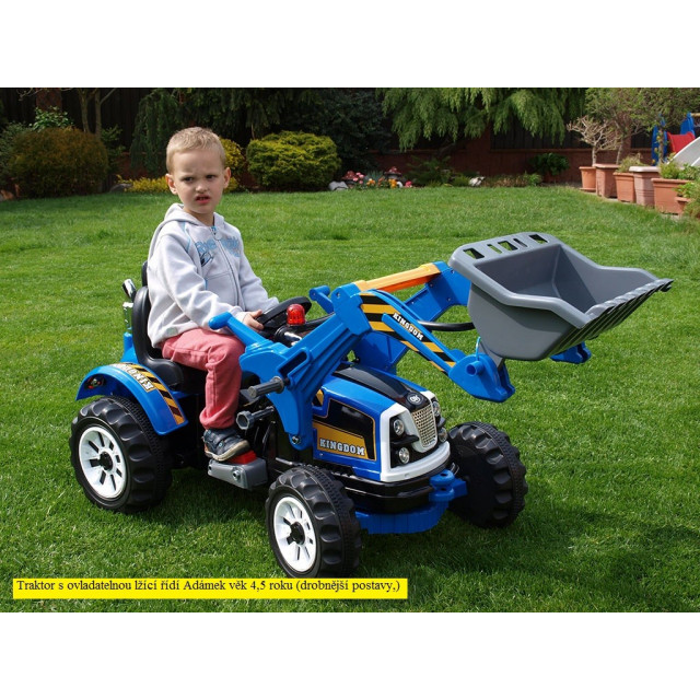 Elektrický 12V traktor Kingdom s ovládateľnou nakladacou lyžicou s masívnou konštrukciou a mohutnými kolesami, 2 motory 45W / 12V s náhonom oboch zadných kolies, 4 rýchlosti.