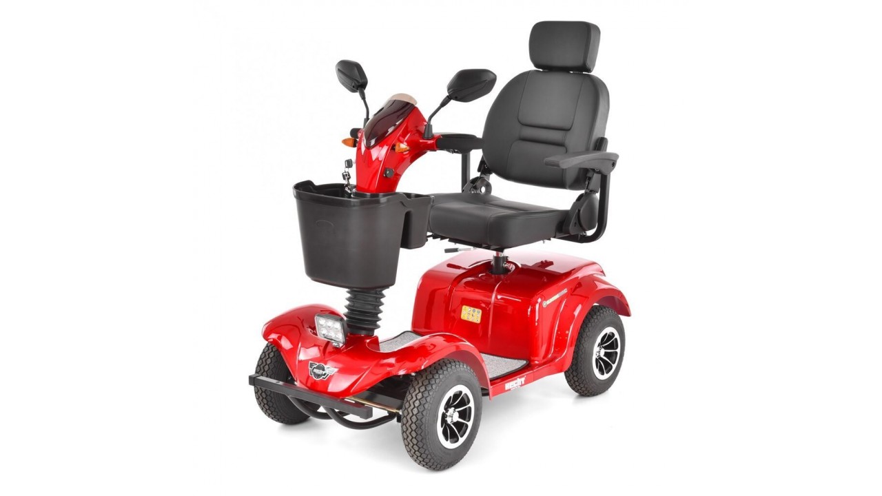 Akumulátorový vozík vhodný pre seniorov, max. dojazd na jedno nabitie až 42 km (závisí od záťaže a terénu), 500W výkon, akumulátor 24 V/40 Ah, max. rýchlosť 15 km/h, max. zaťaženie 150 kg.