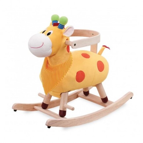 Táto mäkká hojdačka nie je obyčajná. Je to plyšová žirafa s drevenou konštrukciou. Má madlá, opierky na nohy a tiež ochrannú opierku, čo je vhodné pre menšie deti. Až vaše deti povyrastú a budú si na hojdačke istejší, môžete túto opierku na chrbát odstrániť.