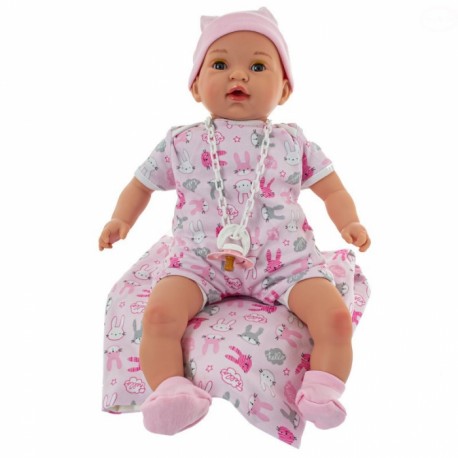 Bábika tiež plače. Súčasťou je cumlík na retiazke.
