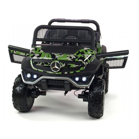Mercedes Benz Unimog s 2.4G DO, 4x4, EVA koly, USB, přehráváním bluetooth, tlumiči, lakovaná černá metalíza. vypínatelný náhon 4x4, otvírací dveře, nákladní prostor, kvalitní materiály a zpracování, lakovaná metalíza, originální vzhled.