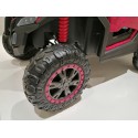 Buggy má odpérovanou zadní nápravu a měkká EVA kola ( obdoba nafukovacích kol) zajišťují tichou a pohodlnou jízdu i v terénu .