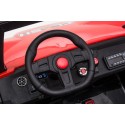 Pro pohodlnou jízdu je autíčko vybaveno polstrovanou polohovatelnou koženou dvousedačkou ( má 4 polohy - pohodlně tak dosáhnou na pedál malé děti a velké si nebudou mačkat kolena o palubní desku) ,sedačka je dále vybavena bezpečnostními pasy