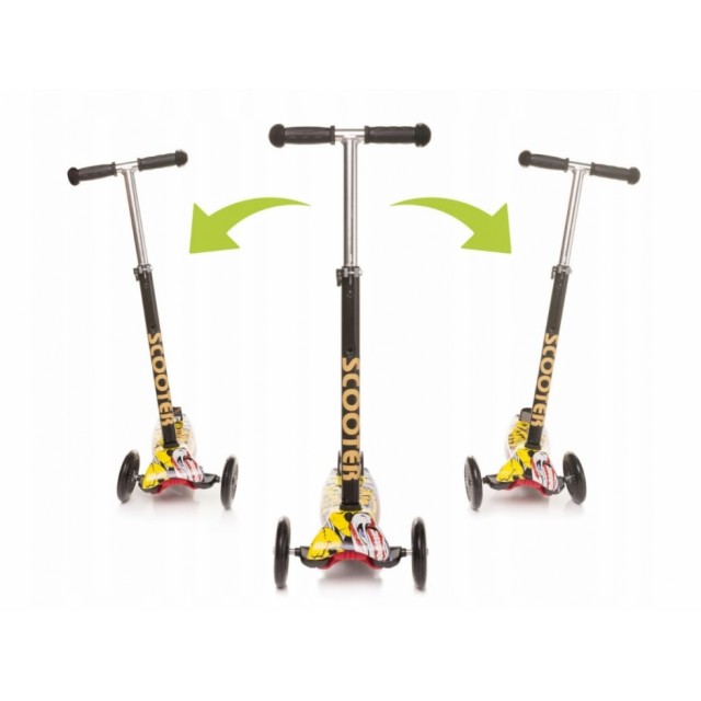 Kolobežka má hliníkové riadidlá s gumovými úchytmi, ktoré zabraňujú skĺznutiu ruky, má dve úrovne nastavenia výšky, takže ho možno ľahko prispôsobiť výške dieťaťa. Je možné ju rozložiť pomocou skrytého tlačidla, vďaka ktorému kolobežka nezaberie veľa miesta pri preprave v kufri auta.