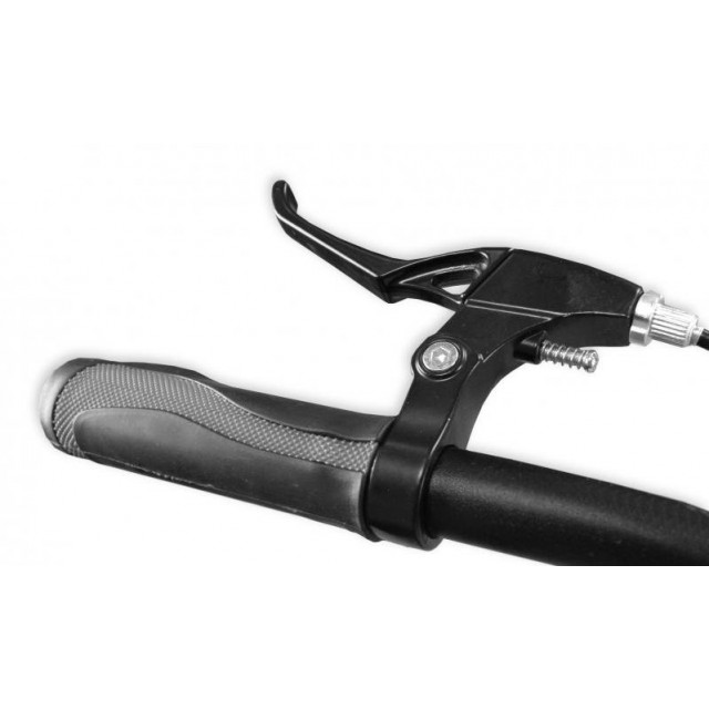 Koloběžka je doplněna o spolehlivé mechanické kotoučové brzdy a Alu ráfky.