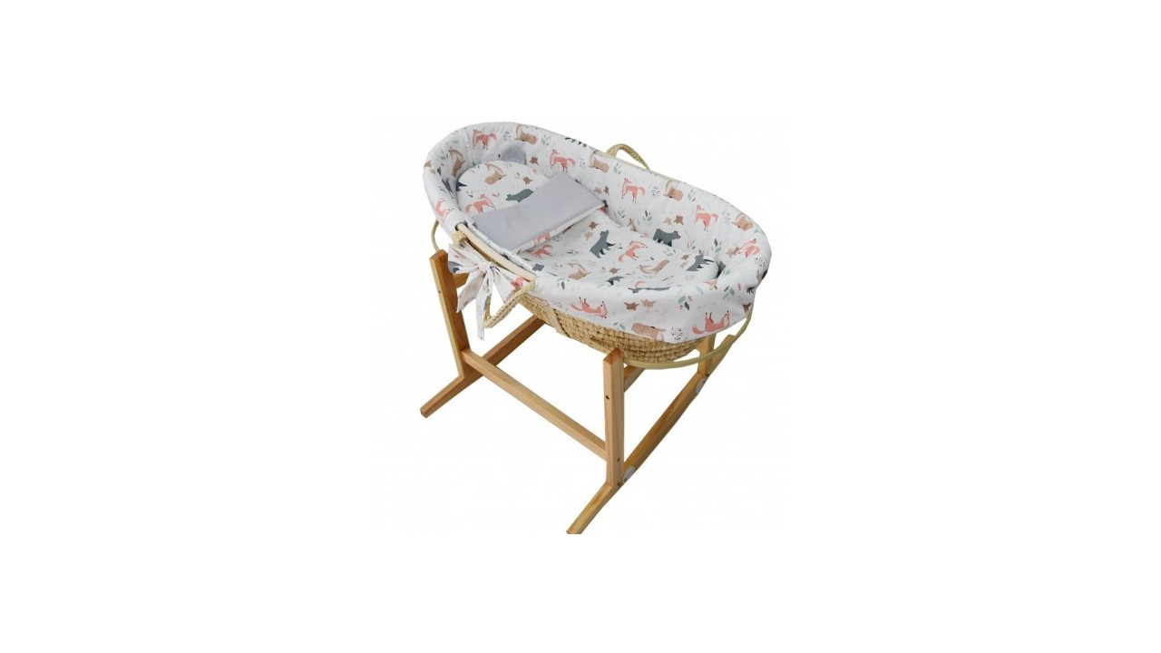 - Vďaka drevenému stojanu, ktorý má zakrivenú základňu, sa košík premení na pohodlnú kolísku, ktorú môžeme postaviť k posteli v spálni alebo v obývacej izbe. Záchytné tyče zaistia, že kôš bude pevne držať na svojom mieste.