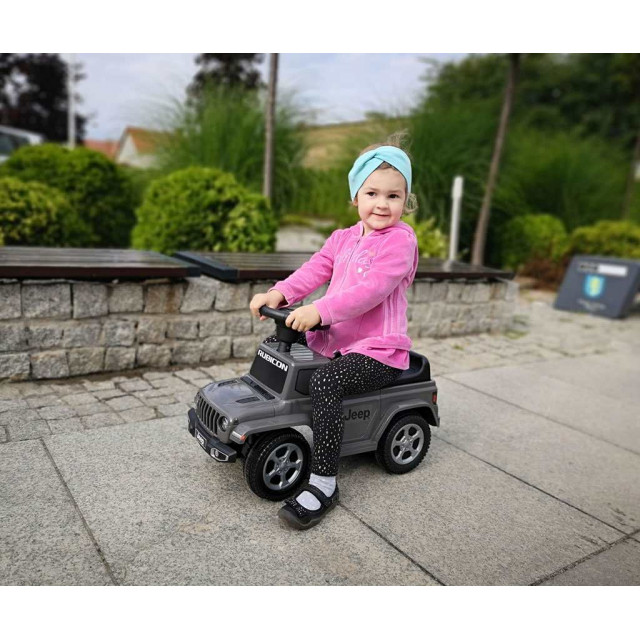 Licencovaný JEEP RUBICON GLADIATOR je odrážadlo, pri ktorého výrobe bola venovaná pozornosť aj tým najmenším detailom a kvalite použitých materiálov. Každého malého fanúšika áut poteší volant s realistickými zvukmi klaksónu a štartu motora. Vďaka použitiu podvozku s blokádou proti prevráteniu a kovovým osám poskytuje odrážadlo dieťaťu bezpečnú zábavu. Auto má ľahkú plastovú konštrukciu a ergonomické tvary zaisťujúce pohodlnú jazdu.