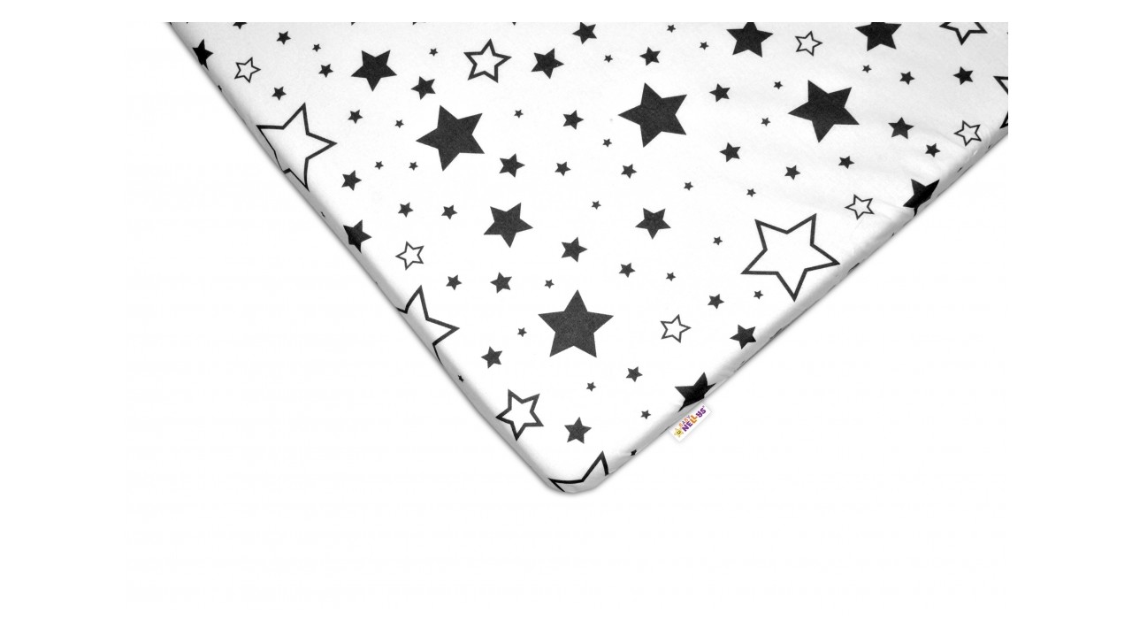 Detské bavlnené prestieradlo do postieľky - Čierne hviezdy a hviezdičky - biele