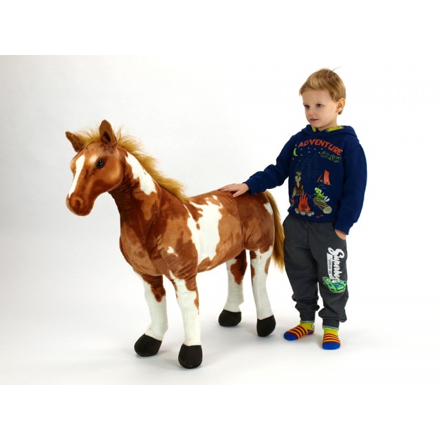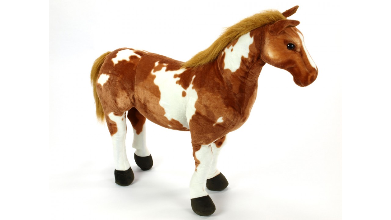Krásný plyšový koník American paint, mazlíček všech dětí, délky 94cm, jako živý, kvalitní materiál a provedení, perfektní napodobení skutečného...
