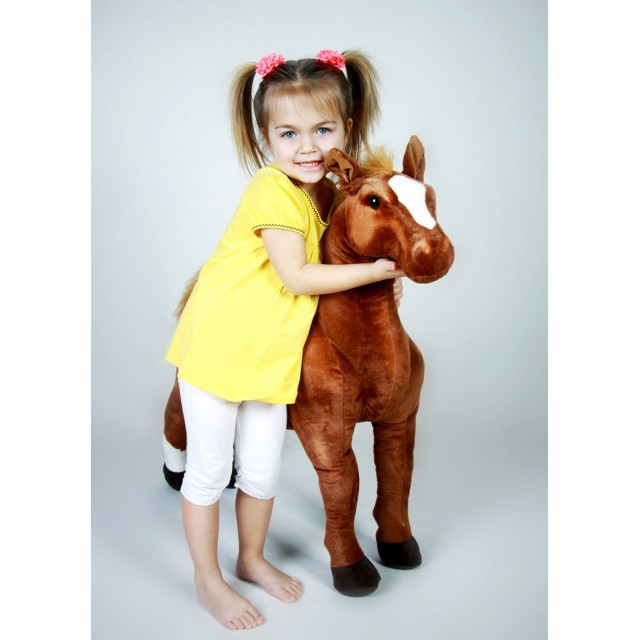 Small Foot Sedací kôň XL hnedý so zvukom Hor sa na ďalšie dobrodružstvo! Tento jazdecký kôň s čalúneným odnímateľným sedlom a roztomilým šatkou...