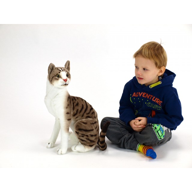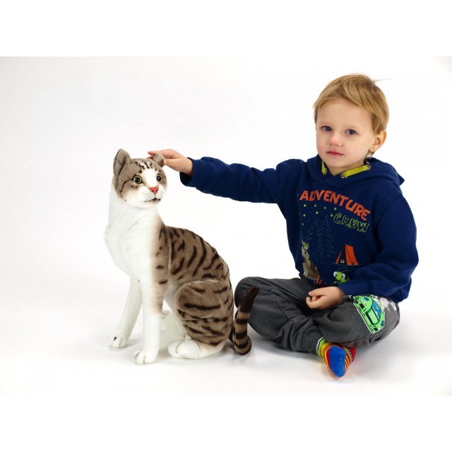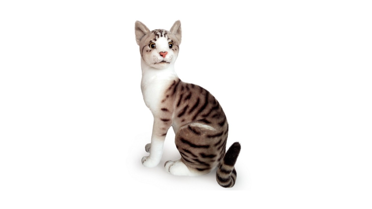 Detailne realistické zobrazenie plyšáka imituje vzhľad skutočnej mačky.