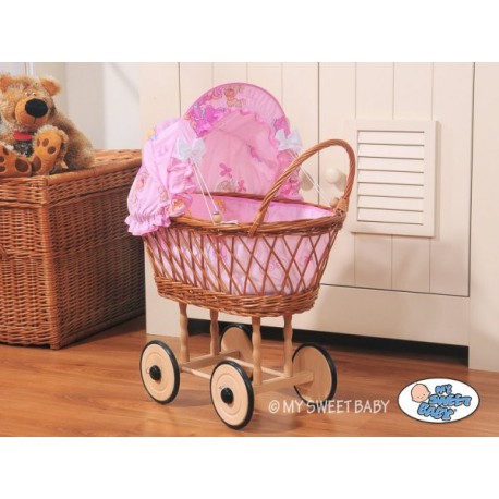 Krásný proutěný kočárek pro panenku značky MY SWEET BABY je nejvyšší jakostní výrobek pro děti. Přírodní proutí a dřevo ve verzi přírodní tvoří spolu s barvami materiálu obšití jedinečný celek. Každý detail dětského kočárku je precizně dopracovaný díky poctivé ruční práci.