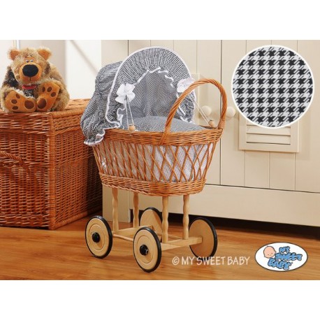 Krásný proutěný kočárek pro panenku značky MY SWEET BABY je nejvyšší jakostní výrobek pro děti. Přírodní proutí a dřevo ve verzi přírodní tvoří spolu s barvami materiálu obšití jedinečný celek. Každý detail dětského kočárku je precizně dopracovaný díky poctivé ruční práci.