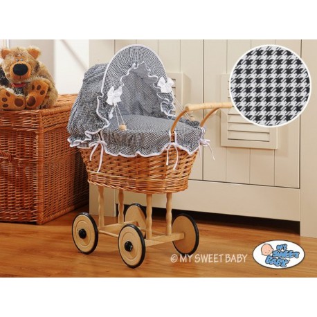 Krásný proutěný kočárek pro panenku značky MY SWEET BABY je nejvyšší jakostní výrobek pro děti. Přírodní proutí a dřevo ve verzi přírodní tvoří spolu s barvami materiálu obšití jedinečný celek. Každý detail dětského kočárku je precizně dopracovaný díky poctivé ruční práci.