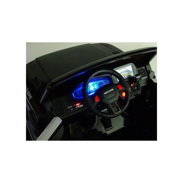 Detailní popis produktu audio player, USB, TF, AUX vstup, voltmetr nabití baterie, klakson, muzika, start motorů, policejní siréna, přední a zadní...