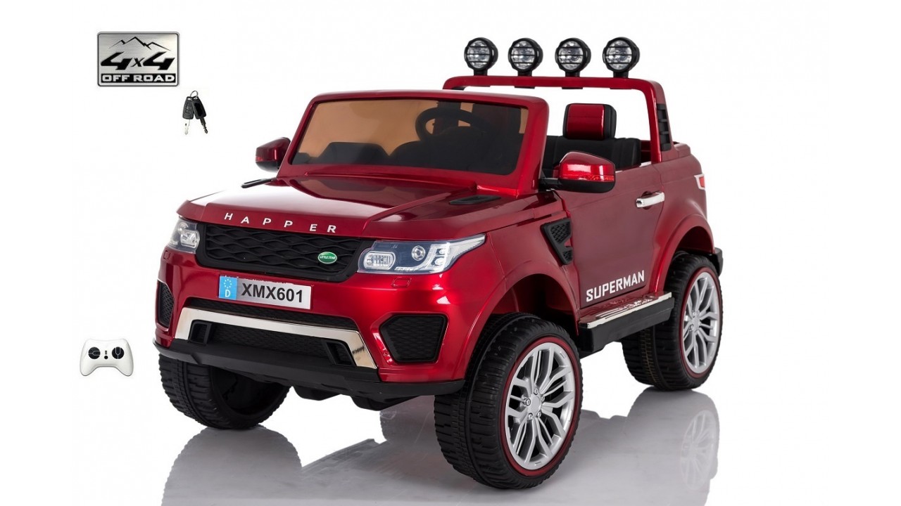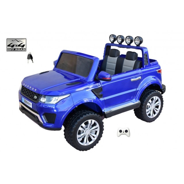 Elektrické SUV Rover Happer special s 2.4G bluetooth dálkovým ovládáním, dvoumístný, náhon všech EVA kol 4x4, start klíčem, USB, voltmetr, LED osvětlení auta, otvírací dveře, kapota a zadní čelo, čalouněná dvousedačka, tažné madlo, kvalitní materiály a zpracování, originální vzhled