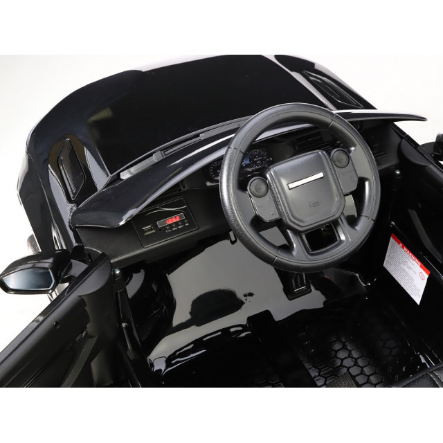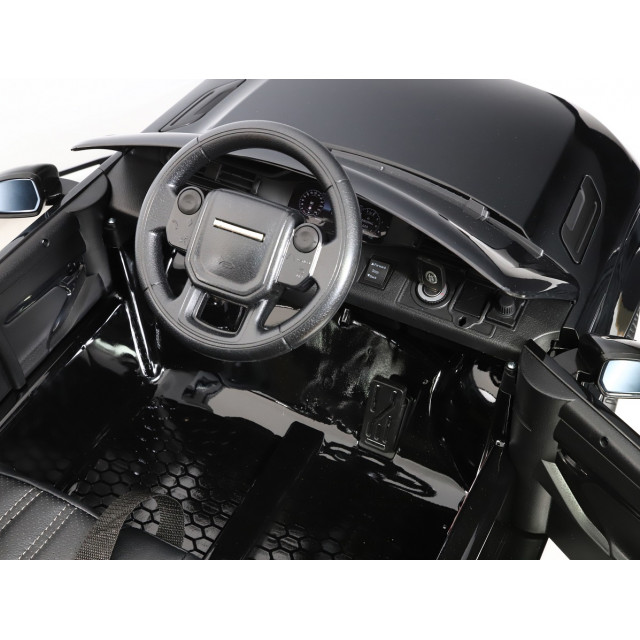 Elektrické SUV Range Rover Evoque s 2.4G bluetooth dálkovým ovládáním, start klíčem, FM rádio, USB, bluetooth, voltmetr, LED osvětlení, otvírací dveře, čalouněná sedačka, EVA kola, odpružení náprav, možnost ručního tažení, kvalitní materiály a zpracování, originální vzhled, lakované metalízou.
