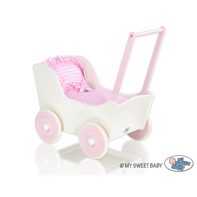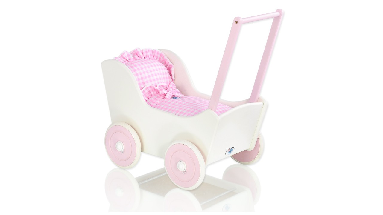 Skvelý darček pre malé dievčatko. Kočík pre bábikyje top produkt pre deti. Vyrobené z bezpečných materiálov. Maľované ekologickými farbami. Kolesá...