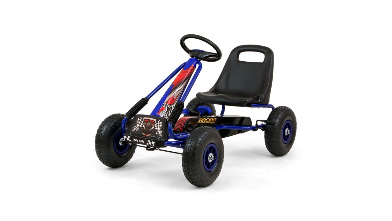 Veľká športová šliapacia motokára Thor bola navrhnutá pre najmladších vodičov a fanúšikov rýchlej jazdy. Konštrukcia z ľahkého kovu s plastovými krytmi v športovom štýle dodá každému malému vodičovi šmrnc. Pohodlie zaisťuje športovo tvarované sedadlo s nastaviteľnou vzdialenosťou od volantu. Športový volant uľahčuje riadenie vozidla a veľké nafukovacie pneumatiky zaistia komfort a pohodlie pri jazde na akomkoľvek povrchu. Motokára má zabudovaný reťazový pohon s možnosťou odpojenia pohonu - funkcia "voľnobežky" - a ručnú brzdu na zadnej náprave. Šlapadlo sa vyznačuje športovým dizajnom a vysokou kvalitou spracovania.
