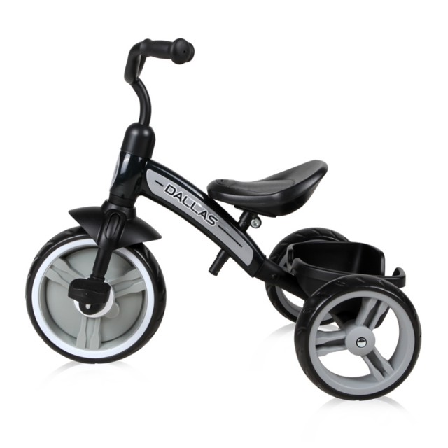 Stabilná detská trojkolka Lorelli DALLAS s moderným dizajnom a kolesami, ktoré nie je nutné nafukovať. Obsahuje ergonomické sedadlo s výškovým nastavením a praktický plastový košík na hračky. Trojkolka je určená pre deti od 2 do 6 rokov.