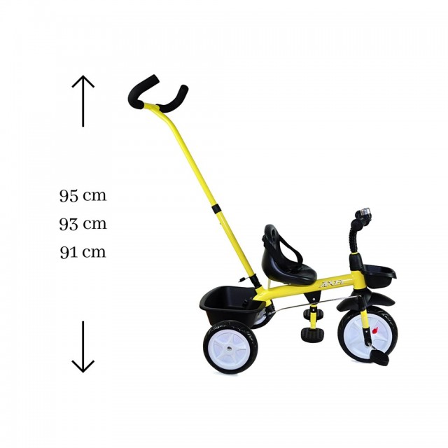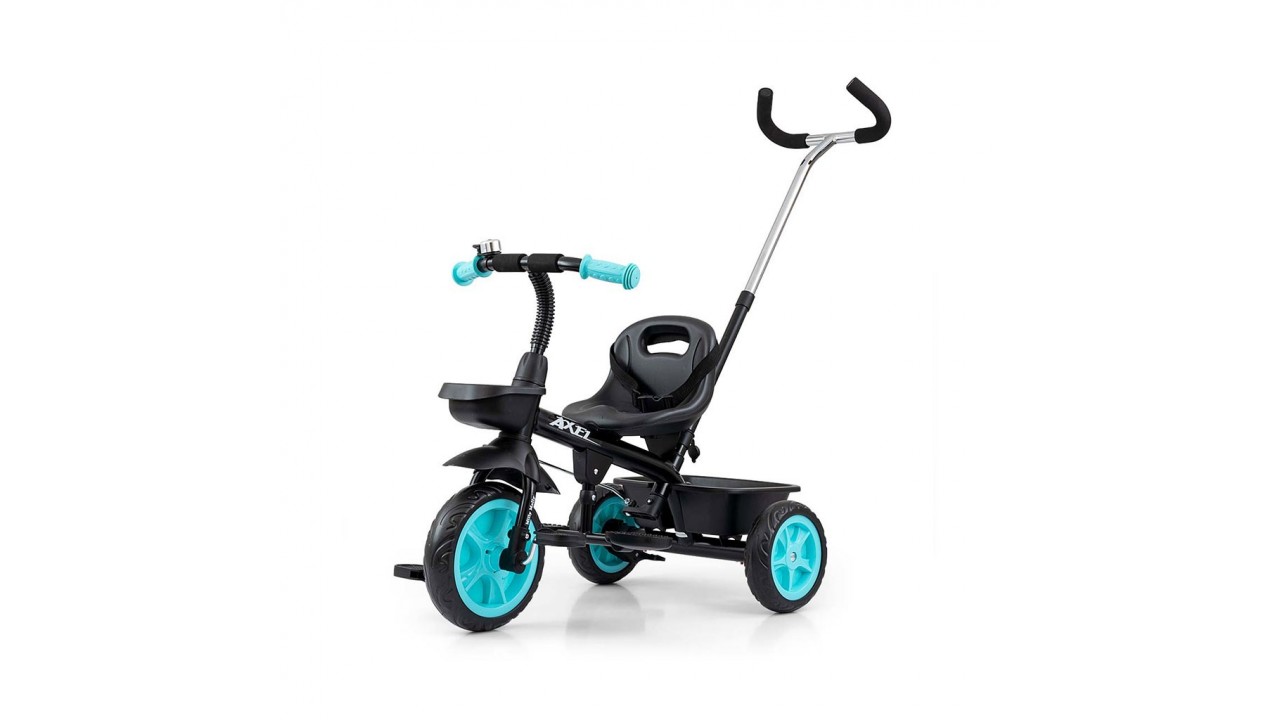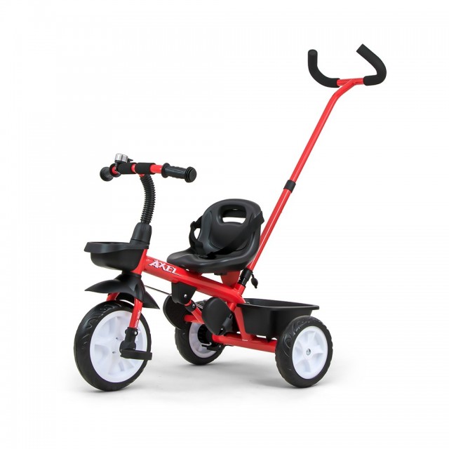 Detská šliapacia trojkolka s rukoväťou Axel je určená pre deti vo veku od 1 do 3 rokov. Je vyrobená z kvalitných a odolných materiálov. Má pohodlné a ergonomicky tvarované sedadlo, kde vzdialenosť k riadidlám možno ľahko nastaviť a tým prispôsobiť trojkolku veku a výške dieťaťa.