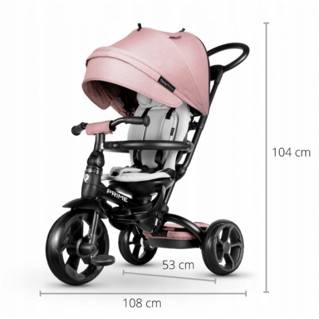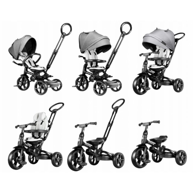 Nastaviteľná teleskopická rodičovská rukoväť, nožná brzda vám umožní ľahko riadiť a ovládať QPlay Prime v rodičovskom režime. Bicykel QPlay New Prime 6v1 je vybavený otočným a sklopným sedadlom s odnímateľnými funkciami, ktoré sa prispôsobia z kočíka - detského bicykla s plnými bezpečnostnými prvkami a rodičovskou výbavou na typickú trojkolku.